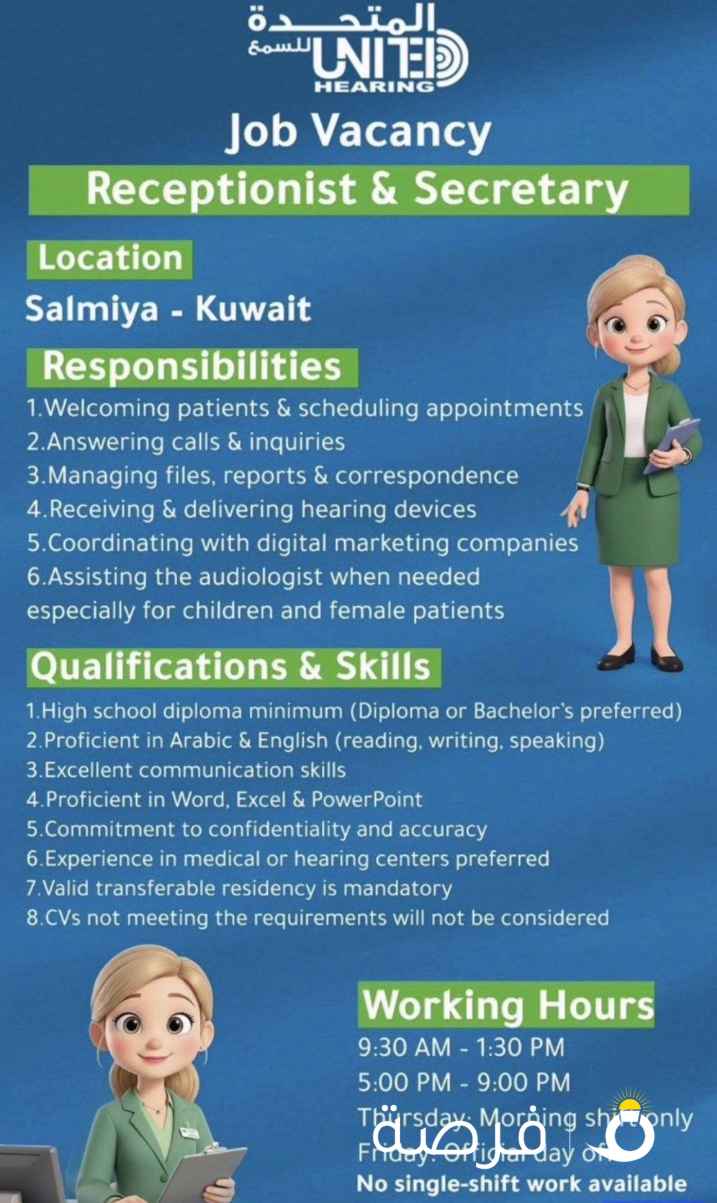 مطلوب وظيفة سكرتيره لرجل اعمال تجيد تنسيق الوقت و العمل على الكمبيوتر و الاكسل و تجيد اللغه الانجليزيه شرط اللباقه وحسنة المظهر التواصل فقط واتساب ممنوع الاتصال
