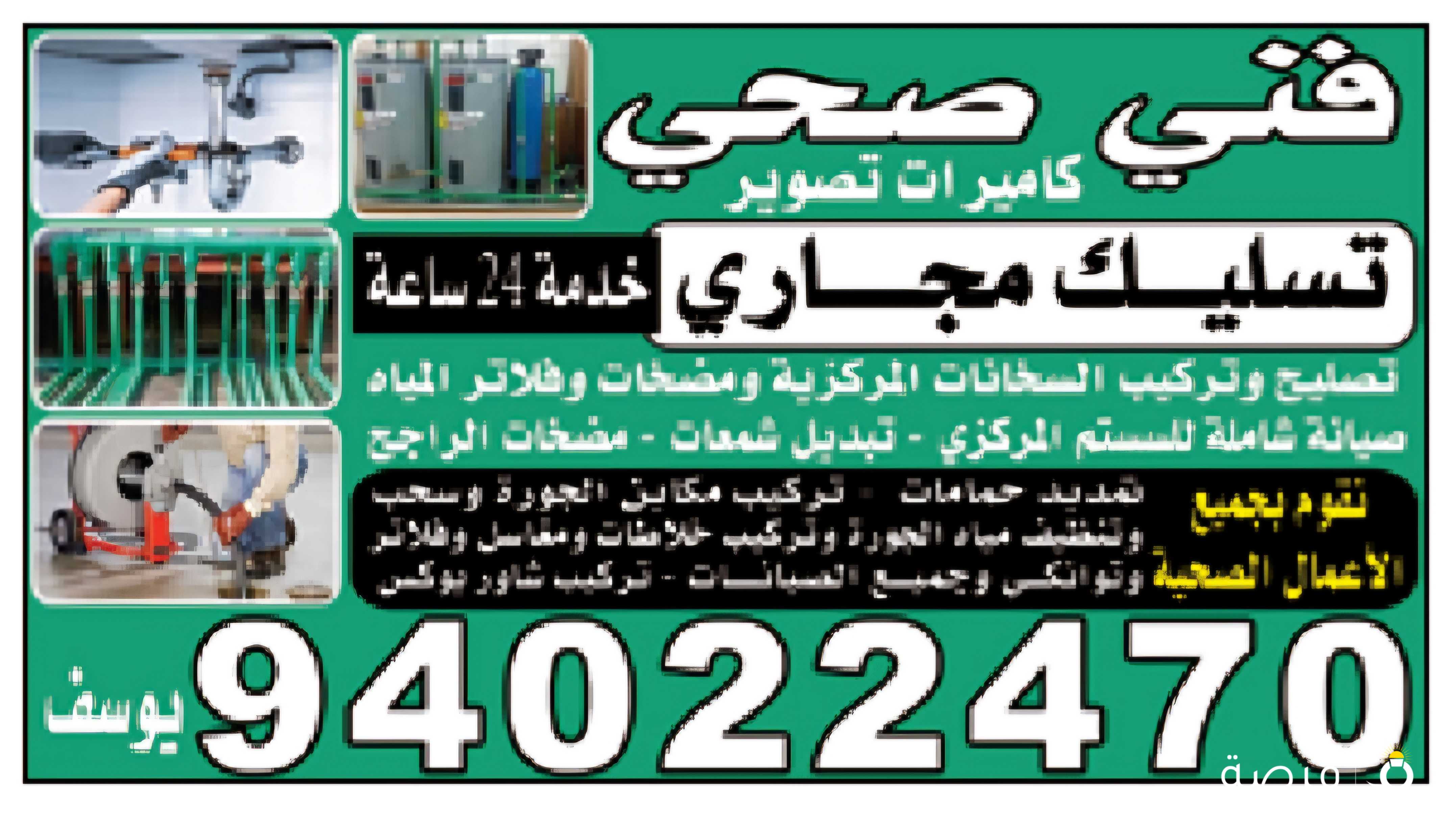 - فني صحي 24 ساعة: لخدمات الطوارئ في أي وقت.
