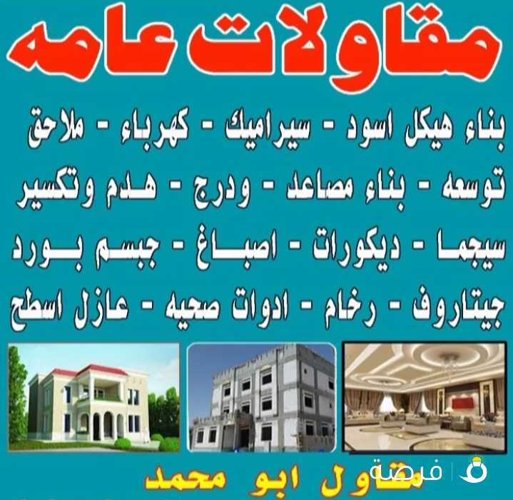 مقاولات عامه بناء هيكل اسود واضافه أدوار وملاحق مساح وسجما عوازل اسطح مع الكفاله ترميمات عامه