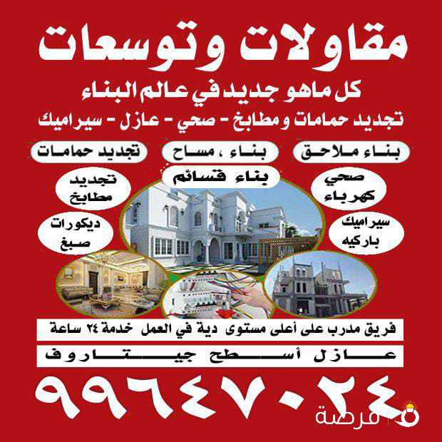 كل ماهو جديد في عالم البناء بناء قسائم بناء ملاحق مساح صحي كهرباء تجديد حمامات تجديد...