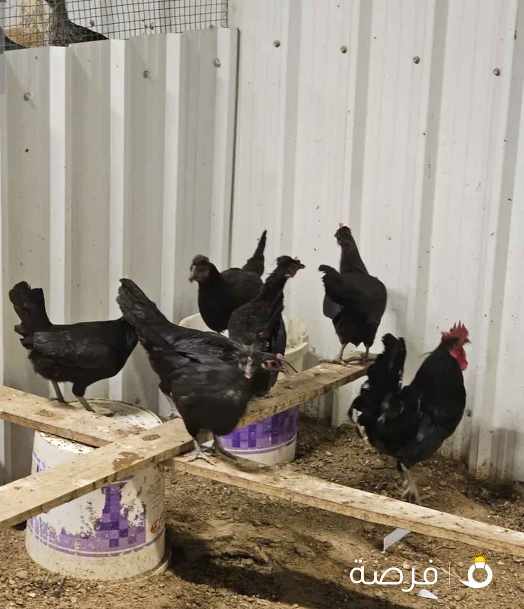 ديك وخمس دجاجات حبحب بياضات ثنين سود مو وحده بس في وحده مو مبينه بالتصوير وثلاث ملونين صام...