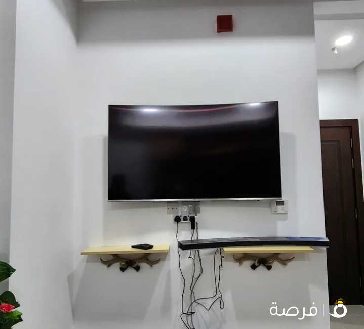 تلفزيون مع طاولة شاشة تلفزيون مضروبة على جهة يسار سعر قابل للتفاوض